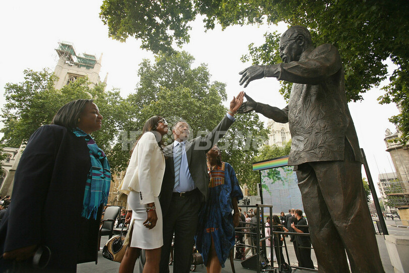 高さ2.7メートルのブロンズ像の除幕式に出席したゴードン・ブラウン(Gordon Brown)首相は、南アフリカのアパルトヘイト(人種隔離政策)撤廃を主導したマンデラ前大統領を「われわれの世代の最も偉大な指導者」として歓迎、熱のこもった演説の中で、マンデラ像は希望の光だと語った。