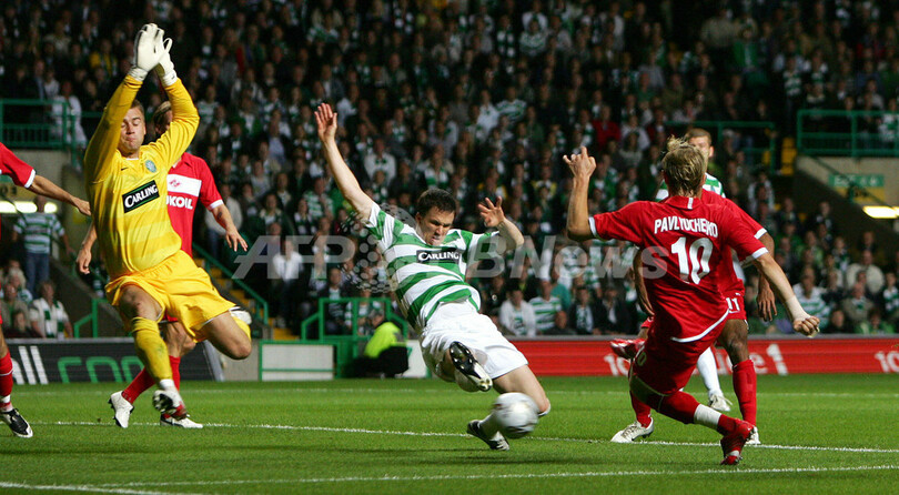 【8月30日 AFP】サッカー欧州チャンピオンズリーグ2007-08(UEFA Champions League 2007-08)・予備選3回戦、セルティック(Celtic、スコットランド)vsスパルタク・モスクワ(Spartak Moscow、ロシア)、第2戦。試合は1-1の引き分けに終わり、2試合合計2-2となり迎えた延長戦でも決着がつかず、PK戦の末セルティックが4-3で勝利を収め本大会出場を決めた。(c)AFP