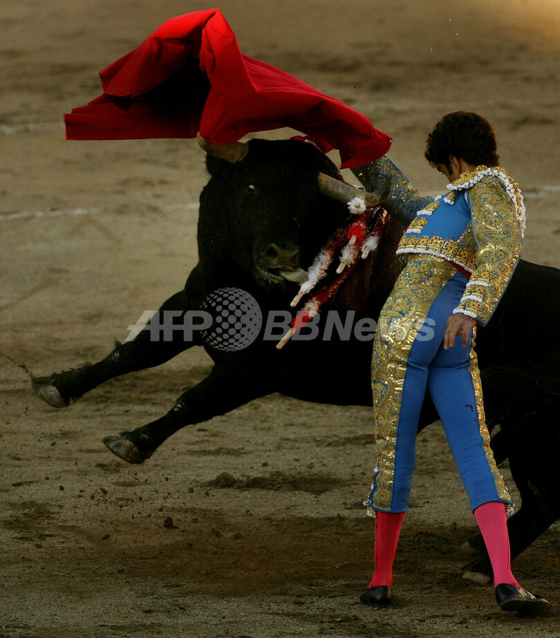 ニュース ライフ こぼれ話 アンダルシアの闘牛場で闘牛士ホセ・トマス、魅惑の演技 2007年8月31日 14:24 発信地:リナレス/スペイン [ ヨーロッパ スペイン ] このニュースをシェア ‹ › ❮ 14/14 ❯ 2007年8月29日、リナレス(Linares)の闘牛場で、牛の突撃をかわす闘牛士ホセ・トマス(Jose Tomas)。(c)AFP/JOSE LUIS ROCA 画像作成中 ! 【8月31日 AFP】アンダルシア(Andalucia)地方のハエン(Jaen)付近にあるリナレス(Linares)の闘牛場で29日、闘牛が開催され、マタドール(闘牛士)のホセ・トマスが演技を行った。(c)AFP ライフ 一覧へ> メディア・報道関係・法人の方向け 写真・動画 購入のお問合せ>