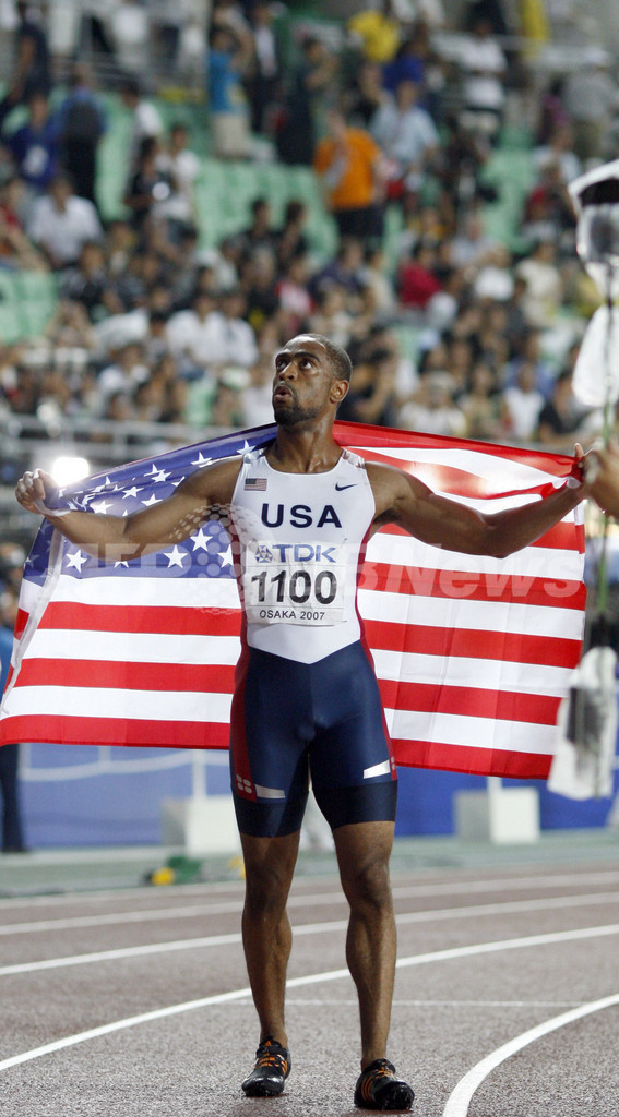 【8月31日 AFP】第11回世界陸上大阪大会(11th IAAF World Championships in Athletics Osaka)、男子200メートル・決勝。米国のタイソン・ゲイ(Tyson Gay)は、大会新記録の19秒76を記録して優勝を果たし、100メートルとの短距離2冠を達成した。
