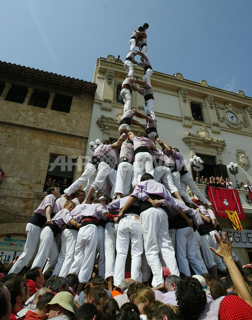 ニュース ライフ こぼれ話 カタルーニャ地方の伝統行事、「人間の塔」コンテスト開催 2007年8月31日 14:03 発信地:Vilafranca/スペイン [ ヨーロッパ スペイン ] このニュースをシェア ‹ › ❮ 1/8 ❯ 2007年8月30日、バルセロナ(%%Barcelona%%)近郊の町Vilafrancaで「人間の塔」コンテストに参加したチームのパフォーマンス。(c)AFP/Cesar Rangel 画像作成中 ! 【8月31日 AFP】スペイン北部にあるカタルーニャ(Catalunya)地方で30日、伝統の「人間の塔」コンテストが行われた。1チームは約250人で構成。その大半が土台となり、上に積み上げられる人間を支える。(c)AFP ライフ 一覧へ> メディア・報道関係・法人の方向け 写真・動画 購入のお問合せ>