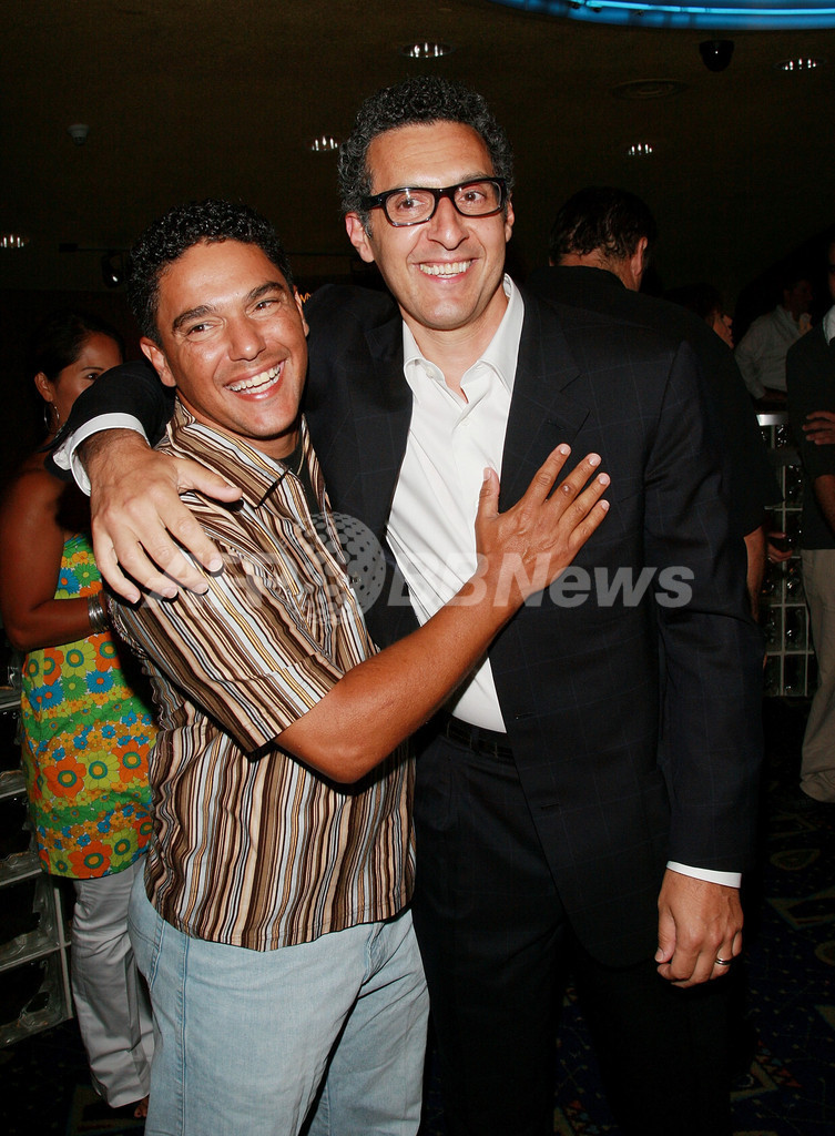 2007年8月30日、クリアビュー・チェルシー・ウェスト・シネマ(Clearview Chelsea West Cinema)で開催された映画『Romance & Cigarettes』の上映会に出席した脚本/監督のジョン・タトゥーロ(%%John Turturro%%、右)と兄弟のニコラス・タトゥーロ(%%Nicholas Turturro%%)。(c)AFP/Getty Images Evan Agostini