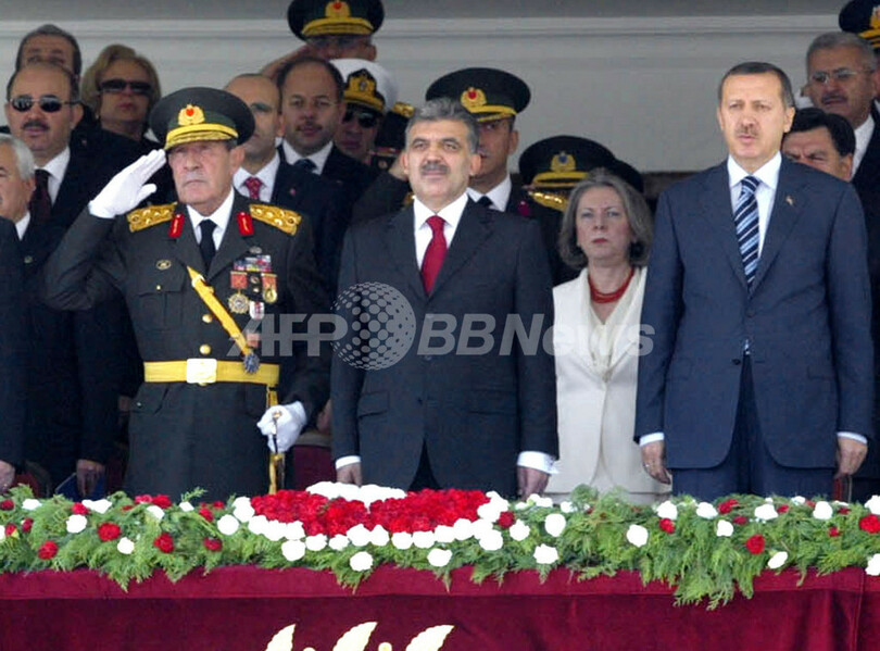 【8月31日 AFP】トルコのアブドラ・ギュル(Abdullah Gul)大統領は30日、首都アンカラ(Ankara)で開催された第85回戦勝記念日を祝う軍事式典に出席した。一方、イスラム教徒でヘッドスカーフを着用しているハイルニサ(Hayrunnisa)大統領夫人は式典に招待されなかった。
