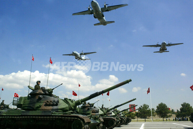 【8月31日 AFP】トルコのアブドラ・ギュル(Abdullah Gul)大統領は30日、首都アンカラ(Ankara)で開催された第85回戦勝記念日を祝う軍事式典に出席した。一方、イスラム教徒でヘッドスカーフを着用しているハイルニサ(Hayrunnisa)大統領夫人は式典に招待されなかった。