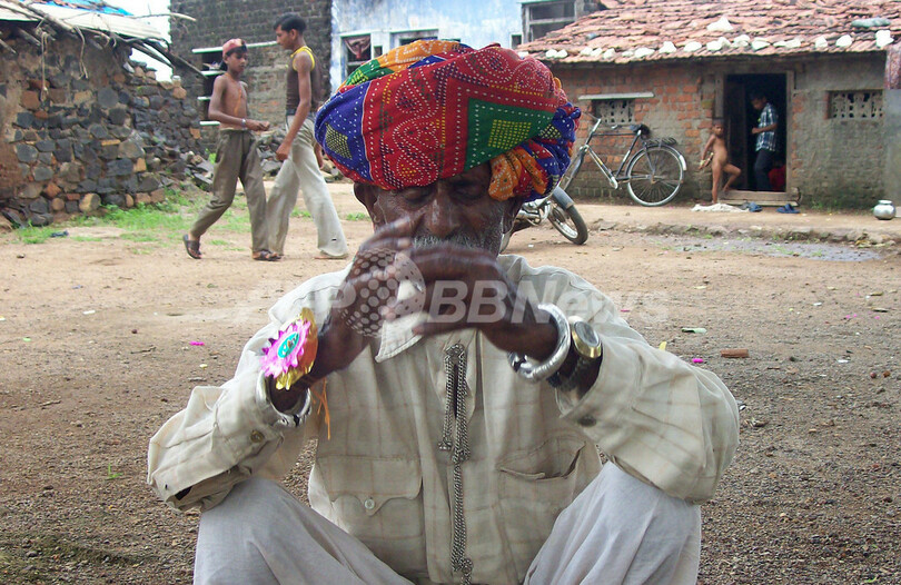 この男性はインド西部ラジャスタン(Rajasthan)州、ジョドプール(Jodhpur)から350キロのPaanchimli村に住むNanu Ram Jogiさん。村にはひ孫20人らを含む一族109人と住み、村人の尊敬を集めている。