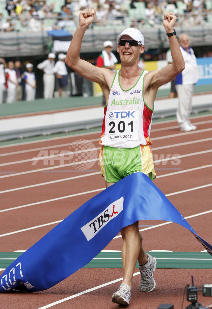 【9月1日 AFP】第11回世界陸上大阪大会(11th IAAF World Championships in Athletics Osaka)、男子50キロメートル競歩・決勝。オーストラリアのネーサン・ディークス(Nathan Deakes)は、シーズンベストとなる3時間43分53秒を記録し、優勝を果たした。