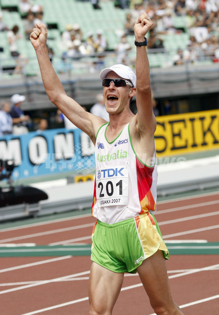 【9月1日 AFP】第11回世界陸上大阪大会(11th IAAF World Championships in Athletics Osaka)、男子50キロメートル競歩・決勝。オーストラリアのネーサン・ディークス(Nathan Deakes)は、シーズンベストとなる3時間43分53秒を記録し、優勝を果たした。