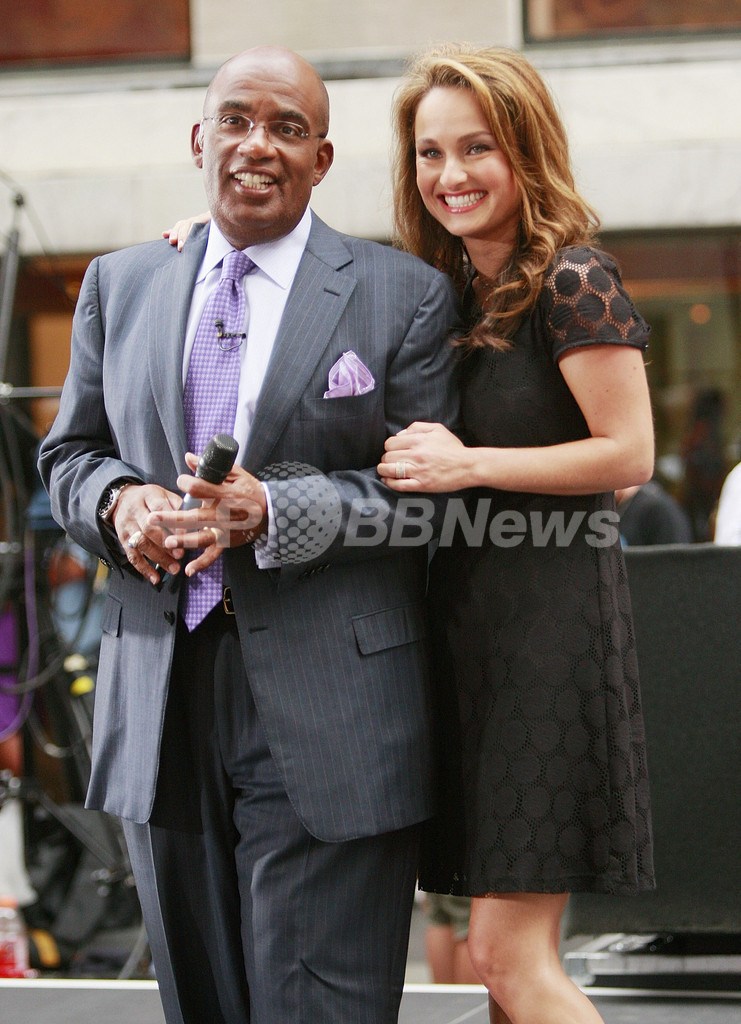 2007年8月31日、NBCの朝のニュース番組「Today Show」に出演したキャスターのアル・ローカー(%%Al Roker%%)と有名シェフのジャーダ・デ・ラウレンティス(Giada De Laurentiis、右)。(c)AFP/Getty Images Evan Agostini