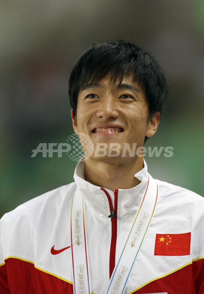 【9月1日 AFP】第11回世界陸上大阪大会(11th IAAF World Championships in Athletics Osaka)、男子110メートルハードル・メダル授与式。中国の劉翔(Liu Xiang)は、12秒95を記録し、金メダルを獲得した。また、2位のテレンス・トラメル(Terrence Trammell、米国)が銀メダル、3位のデービッド・ペイン(David Payne、米国)が銅メダルを獲得した。(c)AFP