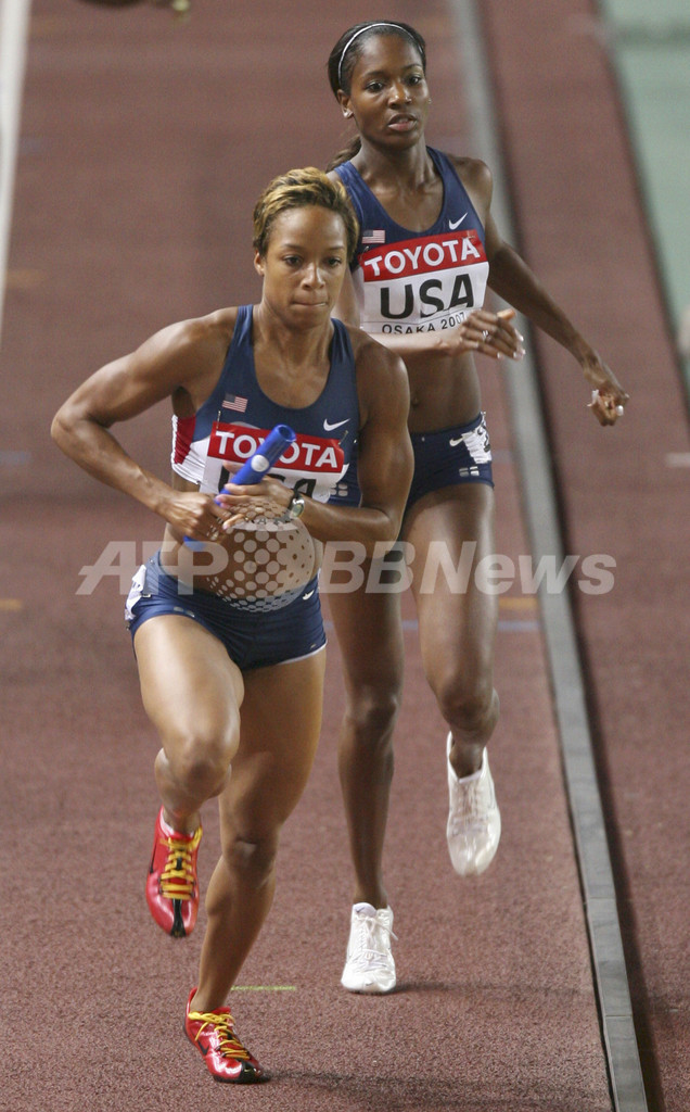 【9月1日 AFP】第11回世界陸上大阪大会(11th IAAF World Championships in Athletics Osaka)、女子4x400メートルリレー・1次予選。米国チーム(ディーディー・トロッターDeeDee Trotter、Monique Hennagan、メアリー・ウィンベルグMary Wineberg、ナターシャ・ヘイスティングスNatasha Hastings)は、3分23秒37を記録し、2組の1位で決勝進出を決めた。決勝には、各組上位3チーム(Q)とその次にタイムの早い2チーム(q)の合わせて8チームが進出した。