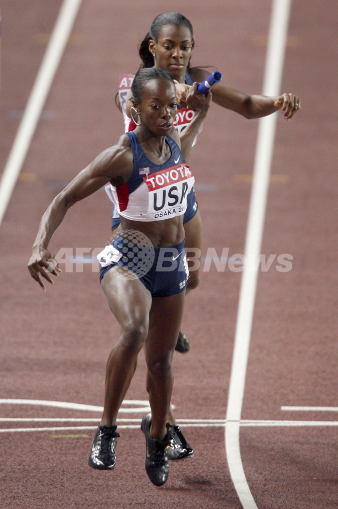 【9月1日 AFP】第11回世界陸上大阪大会(11th IAAF World Championships in Athletics Osaka)、女子4x400メートルリレー・1次予選。米国チーム(ディーディー・トロッターDeeDee Trotter、Monique Hennagan、メアリー・ウィンベルグMary Wineberg、ナターシャ・ヘイスティングスNatasha Hastings)は、3分23秒37を記録し、2組の1位で決勝進出を決めた。決勝には、各組上位3チーム(Q)とその次にタイムの早い2チーム(q)の合わせて8チームが進出した。