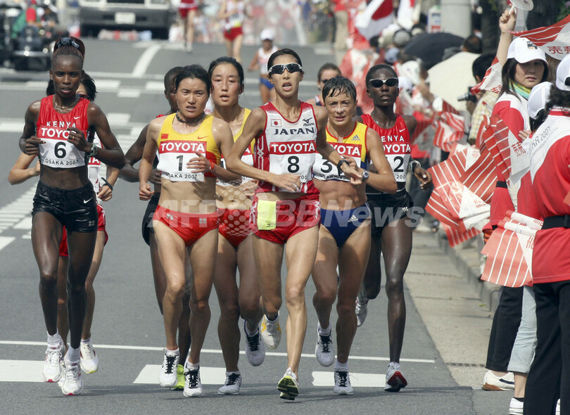 【9月2日 AFP】第11回世界陸上大阪大会(11th IAAF World Championships in Athletics Osaka)、女子マラソン。日本の土佐礼子(Reiko Tosa)は2時間30分55秒を記録し3位入賞を果たし銅メダルを獲得し、開催国の日本に大会初のメダルをもたらした。なお、金メダルは2時間30分37秒を記録したケニアのキャサリン・ヌデレバ(Catherine Ndereba)が、銀メダルは2時間30分45秒を記録した中国の周春秀(Zhou Chunxiu)がそれぞれ獲得した。(c)AFP