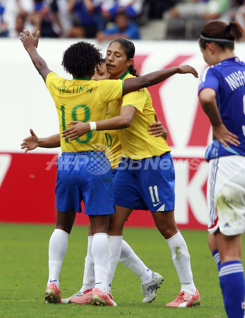 スポーツ サッカー 日本 親善試合でブラジルに逆転勝利 2007年9月2日 19:27 発信地:千葉 [ アジア・オセアニア 千葉 ] このニュースをシェア ‹ › ❮ 2/9 ❯ 前半35分に先制点を挙げて、チームメイトの%%Pretinha%%(左)と喜びを分かち合うブラジルの%%Cristiane Rozeira de Souza Silva%%。(c)AFP/Yoshikazu TSUNO 画像作成中 ! 【9月2日 AFP】女子サッカー・親善試合、日本vsブラジル。試合は2-1で日本が逆転勝利を収めた。(c)AFP サッカー 一覧へ> メディア・報道関係・法人の方向け 写真・動画 購入のお問合せ>