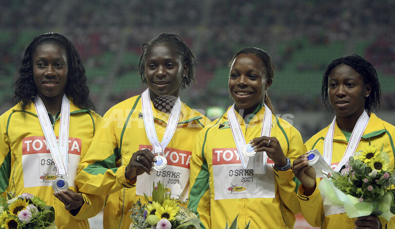 スポーツ スポーツ その他 女子4x100メートルリレーのメダル授与式が行われる 2007年9月2日 20:25 発信地:大阪 [ アジア・オセアニア 大阪 ] このニュースをシェア ‹ › ❮ 2/4 ❯ メダル授与式に臨む銀メダルに輝いたジャマイカチームの(左から)%%Sheri-Ann Brooks%%、カーロン・スチュワート(%%Kerron Stewart%%)、ベロニカ・キャンベル(%%Veronica Campbell%%)、%%Simone Facey%%。(c)AFP/GABRIEL BOUYS 画像作成中 ! 【9月2日 AFP】第11回世界陸上大阪大会(11th IAAF World Championships in Athletics Osaka)、女子4x100メートルリレー・メダル授与式。41秒98を記録して優勝を果たした米国チームは、2位に入ったジャマイカチーム、3位に入ったベルギーチームと共にメダル授与式に臨んだ。(c)AFP スポーツ その他 一覧へ> メディア・報道関係・法人の方向け 写真・動画 購入のお問合せ>