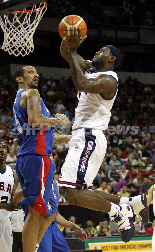 五輪 米国 プエルトリコに圧勝し北京五輪出場権獲得 2007年9月2日 20:50 発信地:ラスベガス/米国 [ 北米 米国 ] このニュースをシェア ‹ › ❮ 3/17 ❯ ゴール下へ切れ込みシュート体勢へ入る米国のレブロン・ジェームズ(%%LeBron James%%)。(c)AFP/Getty Images Jamie Squire 画像作成中 ! 【9月2日 AFP】FIBA男子バスケットボール米大陸選手権2007(2007 FIBA Americas Championship)・準決勝、米国vsプエルトリコ。試合は米国が135-91で勝利を収め、決勝進出を果たすと同時に来年行われる北京五輪出場権を獲得した。(c)AFP/Getty Images 五輪 一覧へ> メディア・報道関係・法人の方向け 写真・動画 購入のお問合せ>