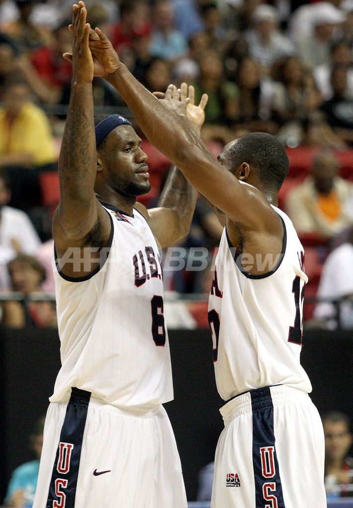 五輪 米国 プエルトリコに圧勝し北京五輪出場権獲得 2007年9月2日 20:50 発信地:ラスベガス/米国 [ 北米 米国 ] このニュースをシェア ‹ › ❮ 12/17 ❯ 得点を挙げチームメイトのコービー・ブライアント(%%Kobe Bryant%%)と喜びを分かち合う米国のレブロン・ジェームズ(%%LeBron James%%)。(c)AFP/Getty Images Jamie Squire 画像作成中 ! 【9月2日 AFP】FIBA男子バスケットボール米大陸選手権2007(2007 FIBA Americas Championship)・準決勝、米国vsプエルトリコ。試合は米国が135-91で勝利を収め、決勝進出を果たすと同時に来年行われる北京五輪出場権を獲得した。(c)AFP/Getty Images 五輪 一覧へ> メディア・報道関係・法人の方向け 写真・動画 購入のお問合せ>