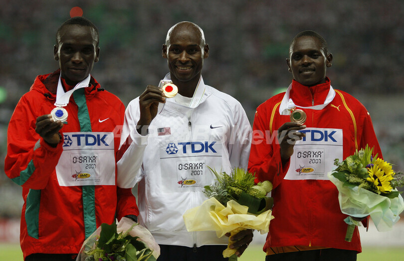 【9月2日 AFP】第11回世界陸上大阪大会(11th IAAF World Championships in Athletics Osaka)、男子5000メートル・決勝。米国のバーナード・ラガト(Bernard Lagat)は、13分45秒87を記録して優勝を飾った。