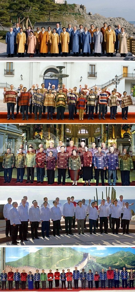 過去の同会議では、出席した各国首脳は、鮮やかなアジアのシルク、チリのポンチョやカナダの革ジャケットなどを着て写真に収まってきた。