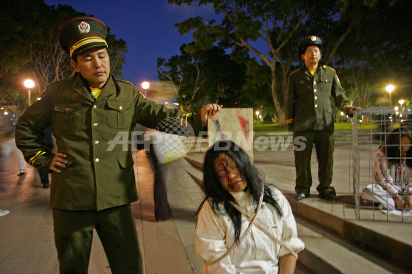 【9月4日 AFP】中国で非合法化されている気功集団「法輪功」(Falun Gong)のメンバーが1日、オーストラリア・シドニー(Sydney)のハイド・パーク(Hyde Park)で、アジア太平洋経済協力会議(Asia-Pacific Economic Cooperation、APEC)の会合開催や、中国の胡錦濤(Hu Jintao)国家主席の訪問に抗議する座り込みを行った。法輪功系の新聞は最近、APEC首脳会議の取材許可を受けたと報じていた。同紙への取材許可は、中国代表団の怒りを買う可能性もある。(c)AFP
