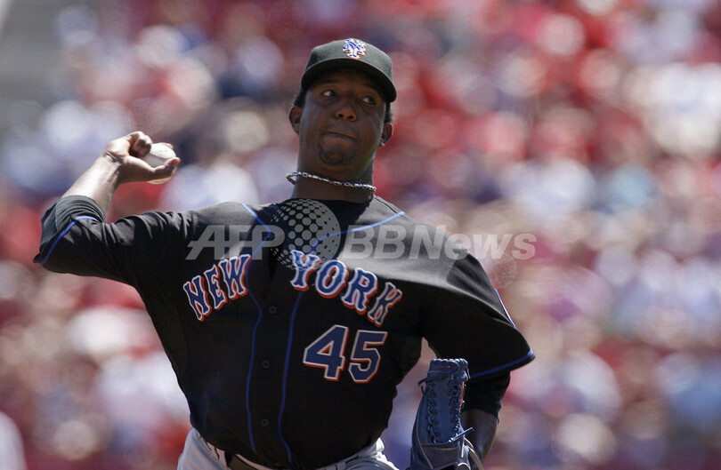 【9月4日 AFP】07MLB、シンシナティ・レッズ(Cincinnati Reds)vsニューヨーク・メッツ(New York Mets)。昨年の10月5日に受けた右肩の手術から復帰後初登板となったメッツの先発ペドロ・マルチネス(Pedro Martinez)は、2回にレッズのアーロン・ハラング(Aaron Harang)から三振を奪って史上15人目となる通算3000奪三振を達成するなど、5回5安打3失点4奪三振で今季初勝利を挙げた。試合はメッツが10-4でレッズを降した。(c)AFP