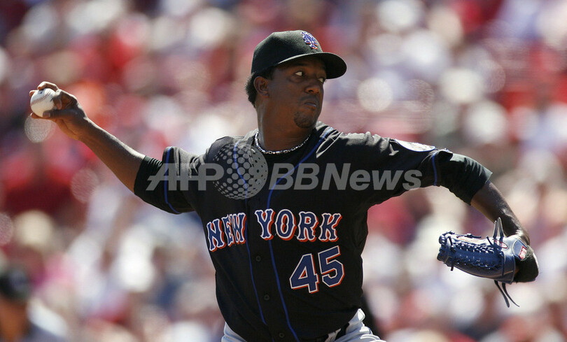 【9月4日 AFP】07MLB、シンシナティ・レッズ(Cincinnati Reds)vsニューヨーク・メッツ(New York Mets)。昨年の10月5日に受けた右肩の手術から復帰後初登板となったメッツの先発ペドロ・マルチネス(Pedro Martinez)は、2回にレッズのアーロン・ハラング(Aaron Harang)から三振を奪って史上15人目となる通算3000奪三振を達成するなど、5回5安打3失点4奪三振で今季初勝利を挙げた。試合はメッツが10-4でレッズを降した。(c)AFP