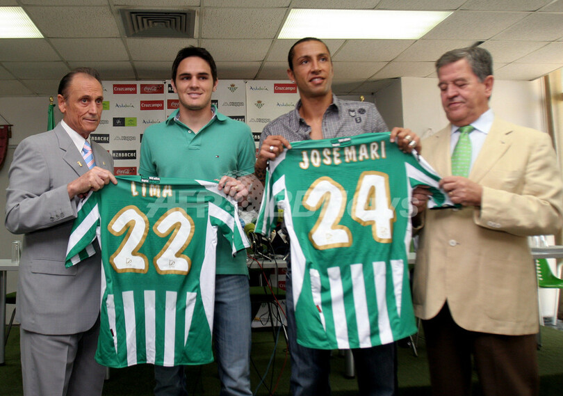 スポーツ サッカー ベティス リマとホセ・マリの入団発表を行う 2007年9月5日 11:58 発信地:セビリア/スペイン [ ヨーロッパ スペイン ] このニュースをシェア ‹ › ❮ 1/3 ❯ カメラに向けてポーズを取る(左から)前会長で大株主のマヌエル・ルイス・デ・ロペラ(%%Manuel Ruiz de Lopera%%)氏、リマ、ホセ・マリ、ホセ・レオン(%%Jose Leon%%)会長。(c)AFP/CRISTINA QUICLER 画像作成中 ! 【9月5日 AFP】スペイン・リーガエスパニョーラ1部のベティス(Betis)は4日、ブラジルリーグ1部のアトレチコ・ミネイロ(Clube Atletico Mineiro)から獲得したブラジル人DFリマ(Wilian Lanes de Lima)とビジャレアル(Villarreal CF)から獲得したスペイン人FWホセ・マリ(Jose Mari)の入団発表を行った。(c)AFP サッカー 一覧へ> メディア・報道関係・法人の方向け 写真・動画 購入のお問合せ>