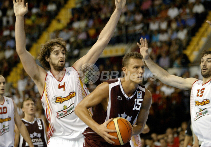 スポーツ バスケットボール スペイン ラトビア降し2連勝 2007年9月5日 12:03 発信地:セビリア/スペイン [ ヨーロッパ スペイン ] このニュースをシェア ‹ › ❮ 1/4 ❯ ラトビアのアンドリス・ビードリンシュ(%%Andris Biedrins%%)をマークするスペインのパウ・ガソル(%%Pau Gasol%%、左)とホルヘ・ガルバホサ(%%Jorge Garbajosa%%、右)。(c)AFP/CRISTINA QUICLER 画像作成中 ! 【9月5日 AFP】バスケットボール欧州選手権2007(EuroBasket 2007)1次リーグ、B組、スペインvsラトビア。試合はスペインが93-77で勝利を収め、スペインは開幕2連勝を飾った。(c)AFP バスケットボール 一覧へ> メディア・報道関係・法人の方向け 写真・動画 購入のお問合せ>