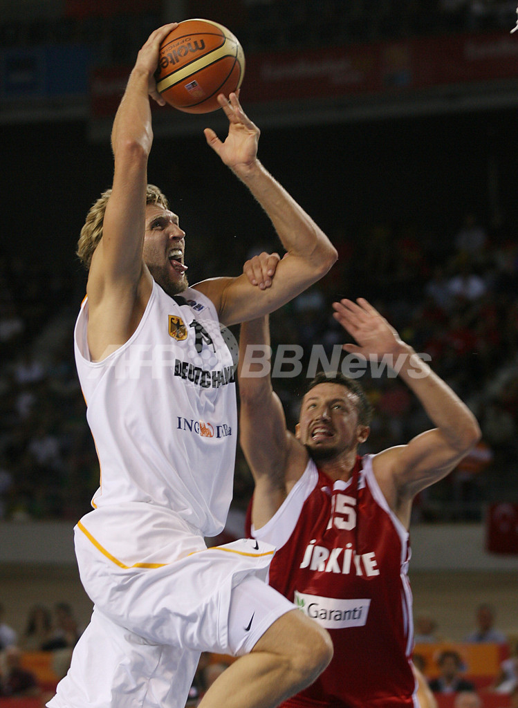 スポーツ バスケットボール ドイツ トルコを降し開幕2連勝 2007年9月5日 12:04 発信地:パルマ・デ・マジョルカ/スペイン [ ヨーロッパ スペイン ] このニュースをシェア ‹ › ❮ 4/4 ❯ シュート体勢に入るドイツのダーク・ノビツキー(%%Dirk Nowitzki%%、左)。(c)AFP/JAIME REINA 画像作成中 ! 【9月5日 AFP】バスケット欧州選手権2007(Euro Basket 2007)1次リーグC組、ドイツvsトルコ。試合はドイツが79-49でトルコに勝利し、ドイツは2連勝を飾った。(c)AFP バスケットボール 一覧へ> メディア・報道関係・法人の方向け 写真・動画 購入のお問合せ>