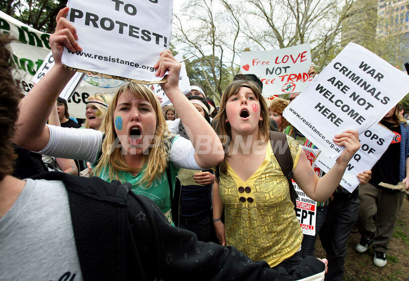 【9月5日 AFP】(写真追加)オーストラリア警察当局は5日、アジア太平洋経済協力会議(Asia-Pacific Economic CooperationAPEC)首脳会議が開催されるシドニー(Sydney)で予定されているジョージ・W・ブッシュ(George W. Bush)米大統領「不歓迎デモ」に関連して、学校を休んでデモに参加する生徒は逮捕すると警告した。