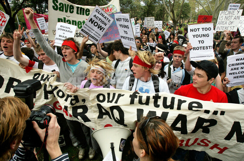 【9月5日 AFP】(写真追加)オーストラリア警察当局は5日、アジア太平洋経済協力会議(Asia-Pacific Economic Cooperation、APEC)首脳会議が開催されるシドニー(Sydney)で予定されているジョージ・W・ブッシュ(George W. Bush)米大統領「不歓迎デモ」に関連して、学校を休んでデモに参加する生徒は逮捕すると警告した。