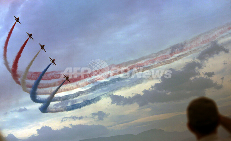 ニュース ライフ こぼれ話 ブルガリア国際エアショー、英仏航空チームが華麗な飛行演技を披露 2007年9月6日 13:49 発信地:プロブジフ/ブルガリア [ ヨーロッパ ブルガリア ] このニュースをシェア ‹ › ❮ 1/6 ❯ 2007年9月5日、プロブジフ(Plovdiv)市近郊のKrumovo空港で、航空ショーを行う英国空軍のレッドアローズ(Red Arrows)。(c)AFP/BORYANA KATSAROVA 画像作成中 ! 【9月6日 AFP】ブルガリア国際エアショーが、首都ソフィア(Sofia)から120キロ離れたプロブジフ(Plovdiv)市近郊のKrumovo空港で5日から始まり、英国空軍のレッドアローズ(Red Arrows)などが華麗な飛行を披露した。(c)AFP ライフ 一覧へ> メディア・報道関係・法人の方向け 写真・動画 購入のお問合せ>