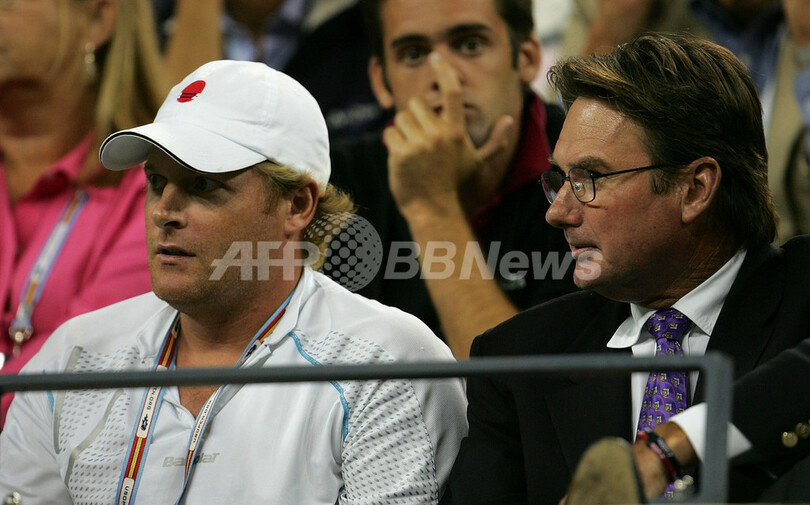 会場にはアンディ・ロディックの兄、ジョン・ロディック(John Roddick)氏と、元テニス選手でアンディ・ロディックのコーチを務めるジミー・コナーズ(Jimmy Connors)氏が登場しスタンドから試合を観戦した。(c)AFP/Getty Images