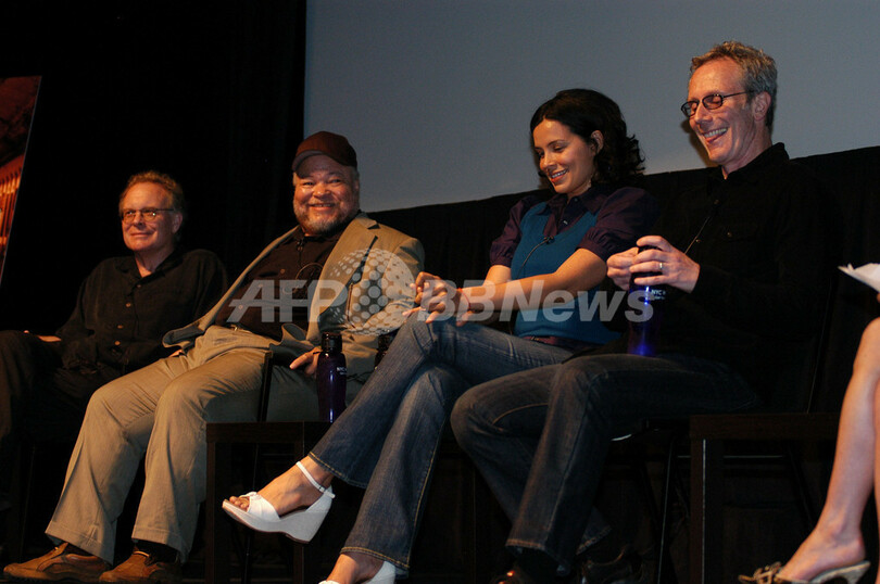 2007年9月6日、ニューヨーク・テレビジョン・フェスティバル(The New York Television Festival、NYTVF)で行われた、米テレビ局FOXのドラマ『New Amsterdam』のQ&Aセッションに登場した(左から)エグゼクティブ・プロデューサーのエリック・オーバーマイヤー(%%Eric Overmyer%%)、俳優の%%Steven Henderson%%、女優のズレイカ・ロビンソン(Zuleikha Robinson)、エグゼクティブ・プロデューサーの%%David Manson%%。(c)AFP/Getty Images Steven Henry