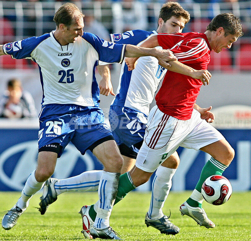 スポーツ サッカー <サッカー 欧州選手権2008・予選>ハンガリー ホームでボスニア・ヘルツェゴビナに勝利 2007年9月9日 4:35 発信地:セーケシュフェヘールバール/ハンガリー [ ヨーロッパ ハンガリー ] このニュースをシェア ‹ › ❮ 3/4 ❯ ボスニア・ヘルツェゴビナのエルヴィル・ラヒミッチ(%%Elvir Rahimic%%、左)とイバン・ラデリッチ(%%Ivan Radeljic%%、右奥)に囲まれるハンガリーのロベルト・フェツェシン(%%Robert Feczesin%%)。(c)AFP/STR 画像作成中 ! 【9月9日 AFP】サッカー、欧州選手権2008(Euro 2008)予選・グループC、ハンガリーvsボスニア・ヘルツェゴビナ。試合はハンガリーが1-0でボスニア・ヘルツェゴビナを降し、通算成績を3勝5敗の勝ち点を9とした。(c)AFP サッカー 一覧へ> メディア・報道関係・法人の方向け 写真・動画 購入のお問合せ>