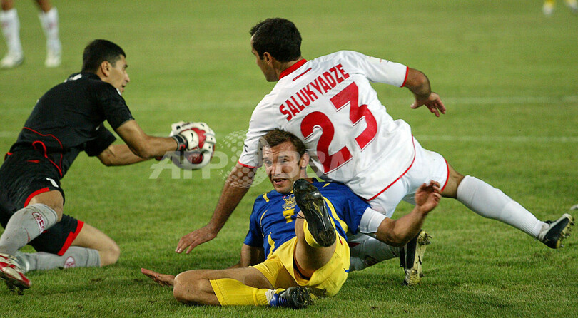 スポーツ サッカー <サッカー 欧州選手権2008・予選>ウクライナ アウェーでグルジアと引き分ける 2007年9月9日 5:39 発信地:トビリシ/ジョージア [ ロシア・CIS ジョージア ] このニュースをシェア ‹ › ❮ 5/5 ❯ グルジアのGKゲオルギ・ロマイア(%%Georgi Lomaia%%、左)とラーシャ・サルクヴァーゼ(%%Lasha Salukvadze%%、右)にシュートを阻まれるウクライナのアンドリー・シェフチェンコ(%%Andriy Shevchenko%%)。(c)AFP/VANO SHLAMOV 画像作成中 ! 【9月9日 AFP】サッカー、欧州選手権2008(Euro 2008)予選・グループB、グルジアvsウクライナ。試合は1-1の引き分けに終わり、ウクライナは通算成績を4勝2敗1分けの勝ち点13とした。(c)AFP サッカー 一覧へ> メディア・報道関係・法人の方向け 写真・動画 購入のお問合せ>