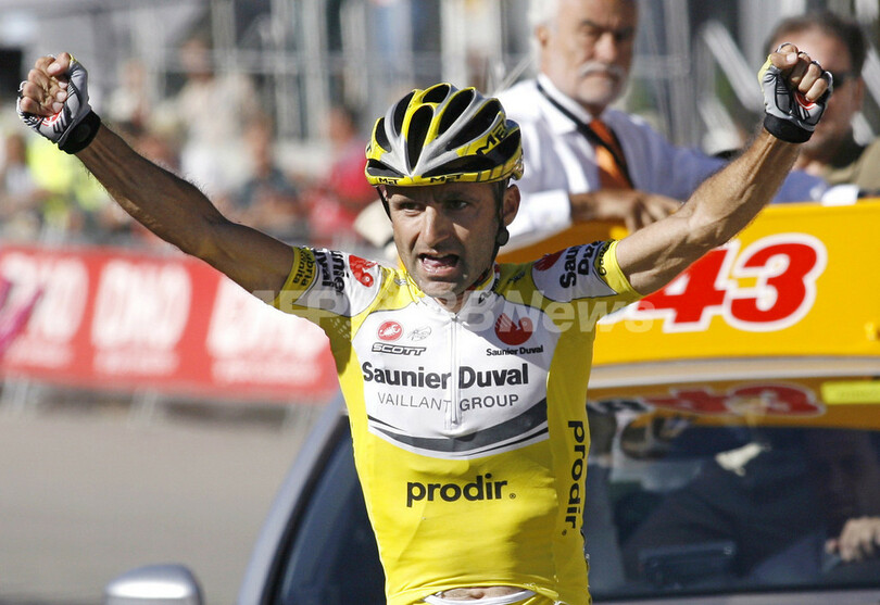 【9月10日 AFP】第62回ブエルタ・ア・エスパーニャ(62nd Vuelta a Espana)、第9ステージ(ウエスカからセルレルスキー場、167.6キロメートル)。サウニエルドゥバル・プロディール(Saunier Duval-Prodir)のレオナルド・ピエポリ(Leonardo Piepoli、イタリア)は、4時間28分21秒を記録してステージ優勝を果たした。