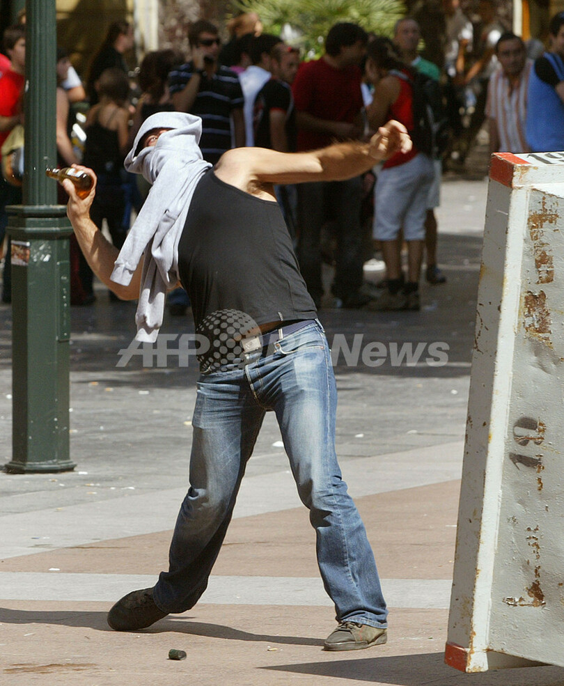 同日には、バスク地方のサン・セバスチャン(San Sebastian)で、警察当局による最近の取り締まりで逮捕されたETAのメンバーの呼びかけで、ETA支持者らがメンバーの釈放を求める非合法デモを行った。(c)AFP