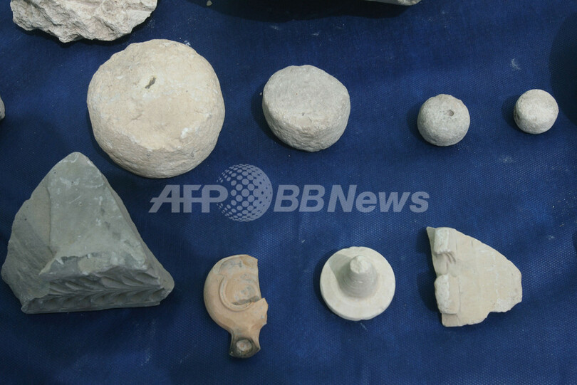 発掘はUniversity of Haifa and ShukronのRonny Reich教授の主導で行われた。同発掘作業では陶器や壺の破片、当時の硬貨なども発見されている。(c)AFP