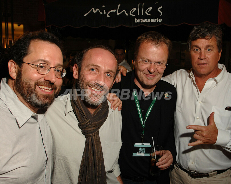 2007年9月8日、第32回トロント国際映画祭(32nd Toronto International Film Festival)で開催されたソニー・ピクチャーズ・クラシックス(Sony Pictures Classics)主催のパーティーに出席した、ソニー・ピクチャーズ・クラシックスの共同経営者マイケル・バーカー(%%Michael Barker%%、左)氏とトム・バーナード(%%Tom Bernard%%、右)氏、俳優の%%Karl Markovics%%(左2)、映画監督の%%Stefan Ruzowitzky%%、右2)。(c)AFP/Getty Images Darryl James