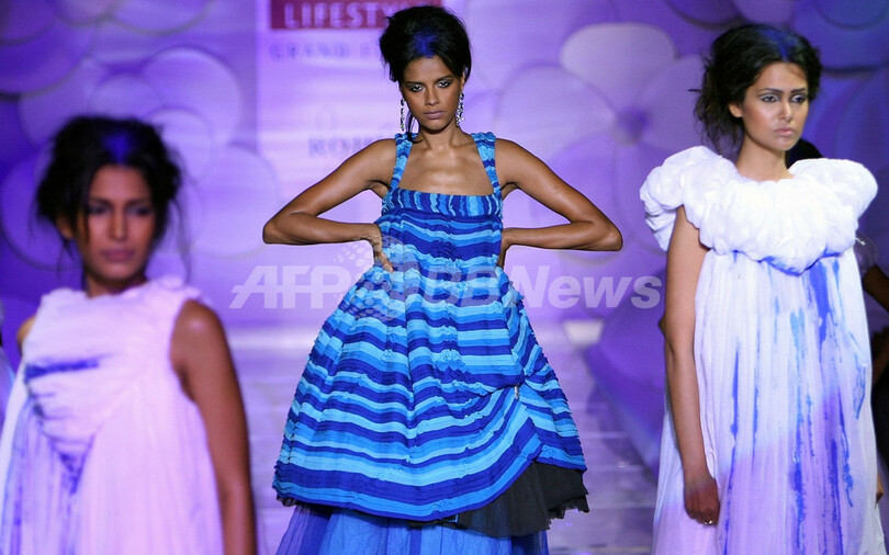 【ニューデリー/インド 10日 AFP】5日から9日までの5日間、インド・ニューデリー市内にて08年春夏インド・ファッションウィーク(The Wills India Fashion Week)が開かれている。冠協賛は国内小売大手ITC社のウィルズ・ライフスタイル(Wills Lifestyle)、同イベントでは71人のデザイナーが新作コレクションを披露する。9月9日にはロヒット・バル(Rohit Bal)、Ashish Pandey、Swapan&Seemaらが新作を発表した。(c)AFP