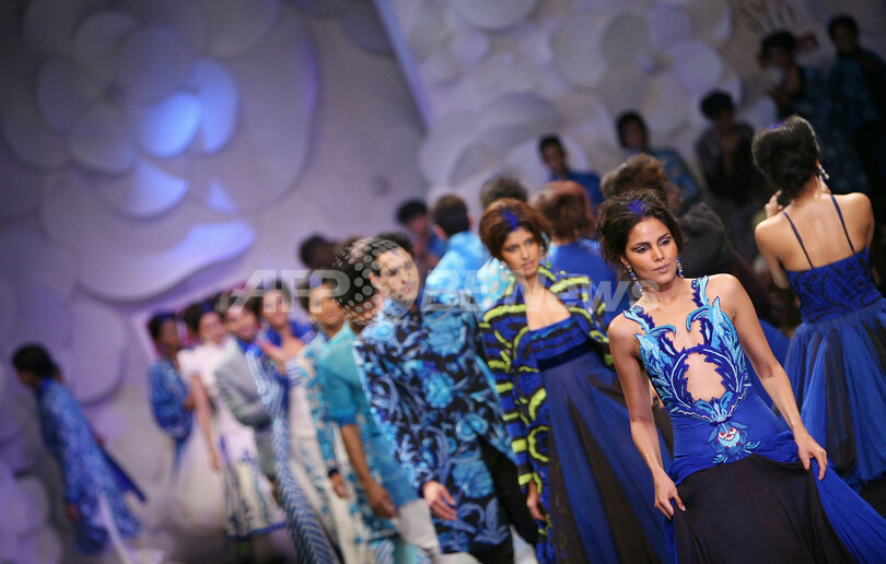 【ニューデリー/インド 10日 AFP】5日から9日までの5日間、インド・ニューデリー市内にて08年春夏インド・ファッションウィーク(The Wills India Fashion Week)が開かれている。冠協賛は国内小売大手ITC社のウィルズ・ライフスタイル(Wills Lifestyle)、同イベントでは71人のデザイナーが新作コレクションを披露する。9月9日にはロヒット・バル(Rohit Bal)、Ashish Pandey、Swapan&Seemaらが新作を発表した。(c)AFP