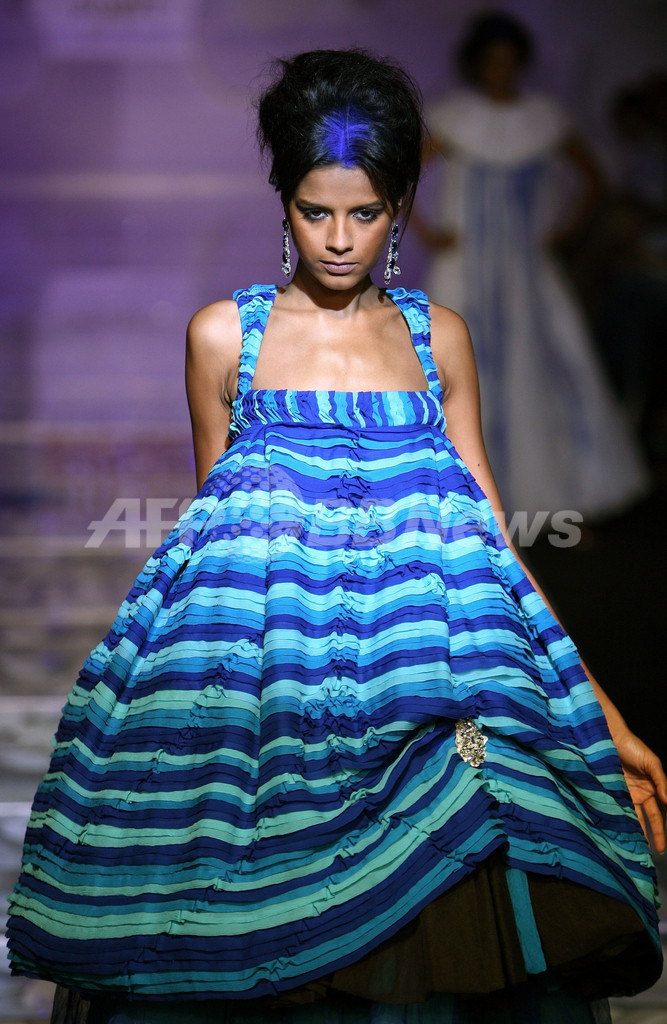 【ニューデリー/インド 10日 AFP】5日から9日までの5日間、インド・ニューデリー市内にて08年春夏インド・ファッションウィーク(The Wills India Fashion Week)が開かれている。冠協賛は国内小売大手ITC社のウィルズ・ライフスタイル(Wills Lifestyle)、同イベントでは71人のデザイナーが新作コレクションを披露する。9月9日にはロヒット・バル(Rohit Bal)、Ashish Pandey、Swapan&Seemaらが新作を発表した。(c)AFP