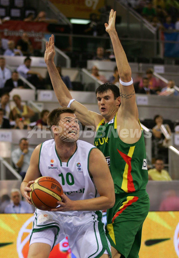 スポーツ バスケットボール リトアニア スロベニア降しグループ1位で決勝トーナメントへ 2007年9月13日 9:29 発信地:マドリード/スペイン [ ヨーロッパ スペイン ] このニュースをシェア ‹ › ❮ 4/6 ❯ スロベニアの%%Uros Skolar%%(左)をマークするリトアニアのクシストフ・ラフリノビッチ(%%Ksystof Lavrinovic%%)。(c)AFP/JAVIER SORIANO 画像作成中 ! 【9月13日 AFP】バスケットボール欧州選手権2007(EuroBasket 2007)2次リーグF組、スロベニアvsリトアニア。試合はリトアニアが80-61でスロベニアを降し、勝ち点を10に伸ばしてグループ1位での決勝トーナメント進出を決めた。(c)AFP バスケットボール 一覧へ> メディア・報道関係・法人の方向け 写真・動画 購入のお問合せ>