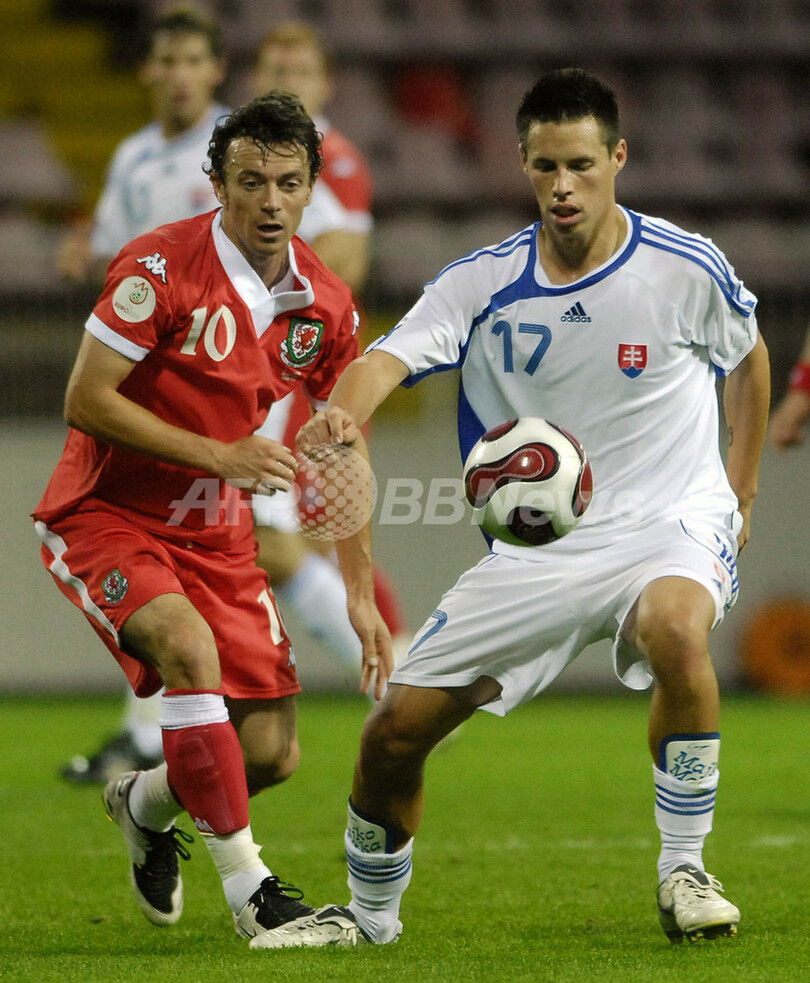 スポーツ サッカー <サッカー 欧州選手権2008・予選>ウェールズ アウェーでスロバキアを降す 2007年9月13日 8:11 発信地:トルナバ/スロバキア [ ヨーロッパ スロバキア ] このニュースをシェア ‹ › ❮ 5/5 ❯ ウェールズのサイモン・デイヴィス(%%Simon Davies%%、左)からマークを受けるスロバキアのマレク・ハムシーク(%%Marek Hamsik%%)。(c)AFP/Samuel Kubani 画像作成中 ! 【9月13日 AFP】サッカー欧州選手権2008(Euro 2008)予選・グループD、スロバキアvsウェールズ。試合はウェールズが5-2でスロバキアを降し、通算成績を3勝4敗1分けの勝ち点10とした。(c)AFP サッカー 一覧へ> メディア・報道関係・法人の方向け 写真・動画 購入のお問合せ>
