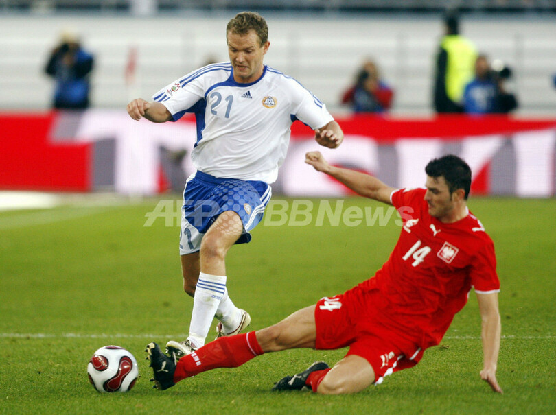 スポーツ サッカー <サッカー 欧州選手権2008・予選>フィンランドvsポーランドはスコアレスドロー 2007年9月13日 8:27 発信地:ヘルシンキ/フィンランド [ ヨーロッパ フィンランド ] このニュースをシェア ‹ › ❮ 2/5 ❯ フィンランドのヨナタン・ヨハンソン(%%Jonatan Johansson%%、左)にスライディングタックルを仕掛けるポーランドのミハル・ゼブラコフ(%%Michal Zewlakow%%)。(c)AFP/LEHTIKUVA/Antti Aimo-Koivisto 画像作成中 ! 【9月13日 AFP】サッカー欧州選手権2008(Euro 2008)予選・グループA、フィンランドvsポーランド。試合は0-0のスコアレスドローに終わった。(c)AFP サッカー 一覧へ> メディア・報道関係・法人の方向け 写真・動画 購入のお問合せ>