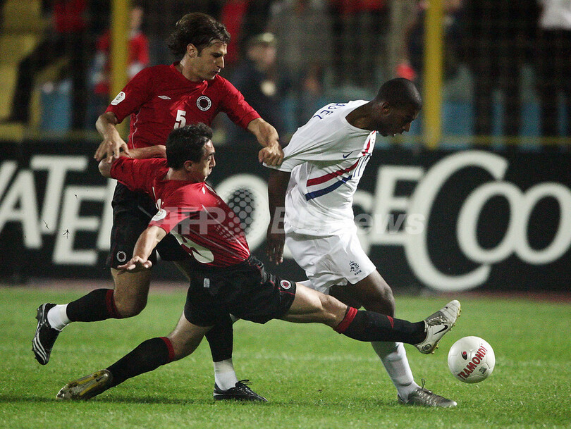 スポーツ サッカー <サッカー 欧州選手権2008・予選>オランダ アウェーでアルバニアに勝利 2007年9月13日 11:38 発信地:ティラナ/アルバニア [ ヨーロッパ アルバニア ] このニュースをシェア ‹ › ❮ 4/6 ❯ 激しくボールを奪い合うオランダのライアン・バベル(%%Ryan Babel%%、右)とアルバニアのネヴィル・デデ(%%Nevil Dede%%、中央)とロリク・カナ(%%Lorik Cana%%)。(c)AFP/DIMITAR DILKOFF 画像作成中 ! 【9月13日 AFP】サッカー欧州選手権2008(Euro 2008)予選・グループG、アルバニアvsオランダ。試合はオランダが1-0でアルバニアを降し、通算成績を6勝2分の勝ち点を20とした。(c)AFP サッカー 一覧へ> メディア・報道関係・法人の方向け 写真・動画 購入のお問合せ>