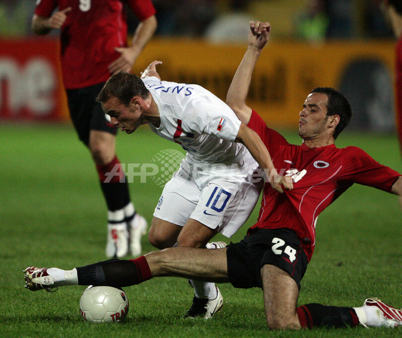 スポーツ サッカー <サッカー 欧州選手権2008・予選>オランダ アウェーでアルバニアに勝利 2007年9月13日 11:38 発信地:ティラナ/アルバニア [ ヨーロッパ アルバニア ] このニュースをシェア ‹ › ❮ 5/6 ❯ 激しくボールを奪い合うオランダのウェズレイ・スナイデル(%%Wesley Sneijder%%、左)とアルバニアのデバティク・クッリ(%%Debatik Curri%%)。(c)AFP/DIMITAR DILKOFF 画像作成中 ! 【9月13日 AFP】サッカー欧州選手権2008(Euro 2008)予選・グループG、アルバニアvsオランダ。試合はオランダが1-0でアルバニアを降し、通算成績を6勝2分の勝ち点を20とした。(c)AFP サッカー 一覧へ> メディア・報道関係・法人の方向け 写真・動画 購入のお問合せ>