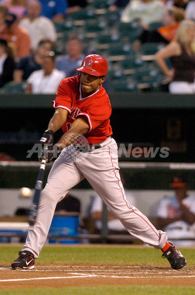 【9月13日 AFP】07MLB、ボルティモア・オリオールズ(Baltimore Orioles)vsロサンゼルス・エンゼルス・オブ・アナハイム(Los Angeles Angels of Anaheim)。試合はエンゼルスが18-6でオリオールズを降し、2連勝を飾った。(c)AFP/Getty Images