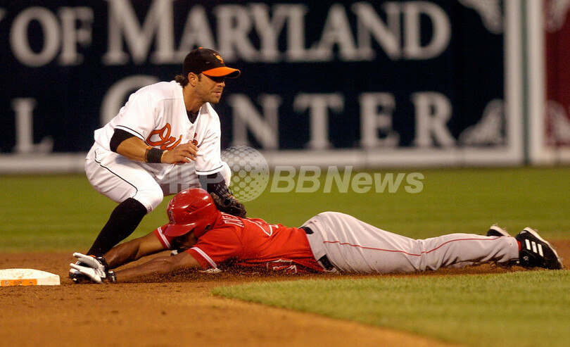 【9月13日 AFP】07MLB、ボルティモア・オリオールズ(Baltimore Orioles)vsロサンゼルス・エンゼルス・オブ・アナハイム(Los Angeles Angels of Anaheim)。試合はエンゼルスが18-6でオリオールズを降し、2連勝を飾った。(c)AFP/Getty Images
