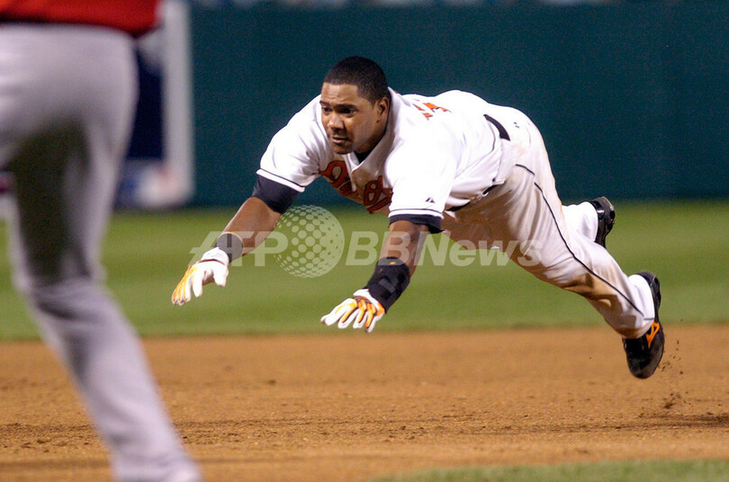 【9月13日 AFP】07MLB、ボルティモア・オリオールズ(Baltimore Orioles)vsロサンゼルス・エンゼルス・オブ・アナハイム(Los Angeles Angels of Anaheim)。試合はエンゼルスが18-6でオリオールズを降し、2連勝を飾った。(c)AFP/Getty Images